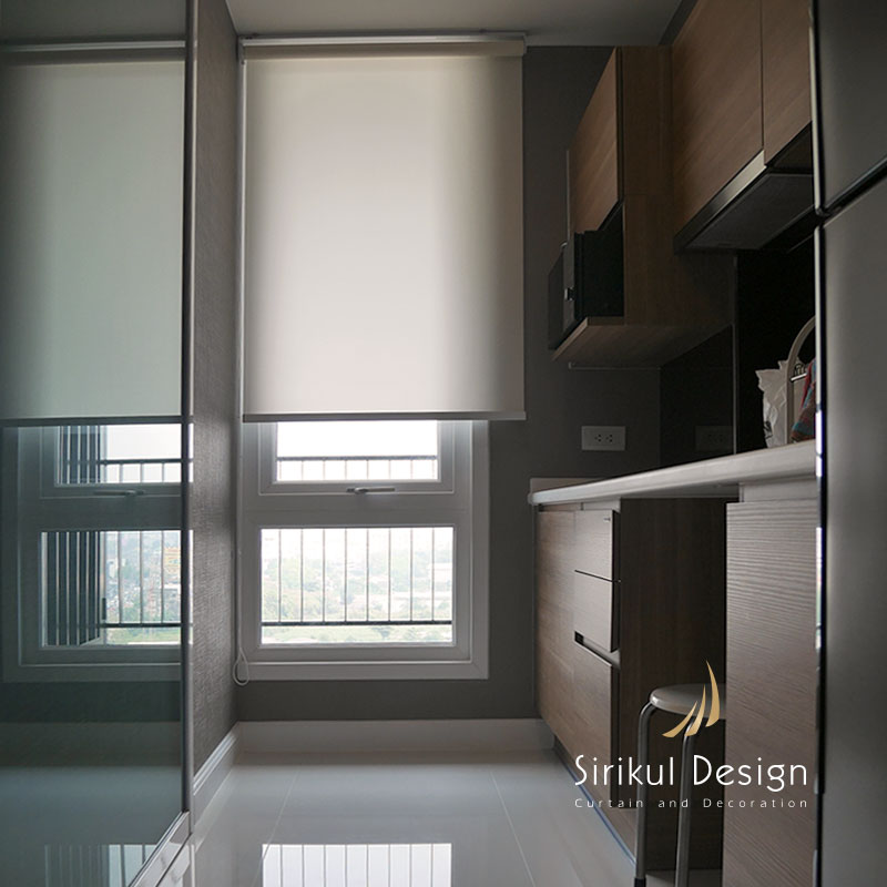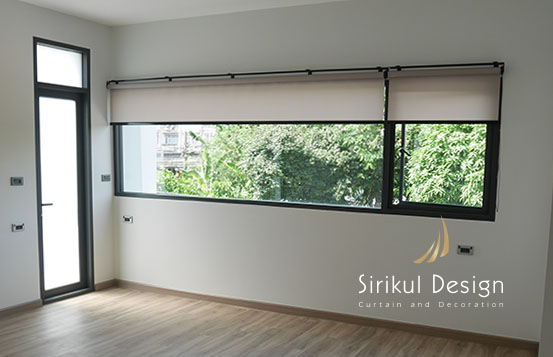 - ม่านม้วน สามารถดึงม้วนเก็บขึ้นด้านบนได้ทั้งหมด ทำให้ห้องดูโปร่ง และเห็นวิวภายนอกได้เต็มที่เมื่อเปิดม่าน